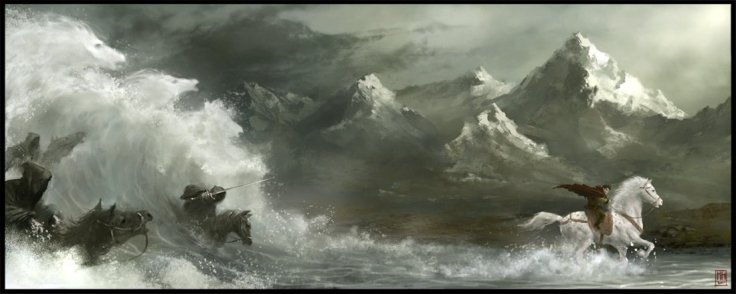 This week, Lucy and I finished ‘Flight to the Ford’ for bedtime reading. Lucy was getting genuinely tense about it, but not overly scared. To aid her in the rather dense (at times) prose, she’s been flipping through Fonstad’s atlas as we go and I’ve been showing her appropriate artwork from a variety of sources (nothing from the films) along the way.